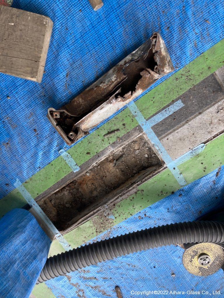 ケースが外れたら、下の部分のコンクリートをはつりケースの納まりが良くなるまで古いコンクリートを除去していきます。