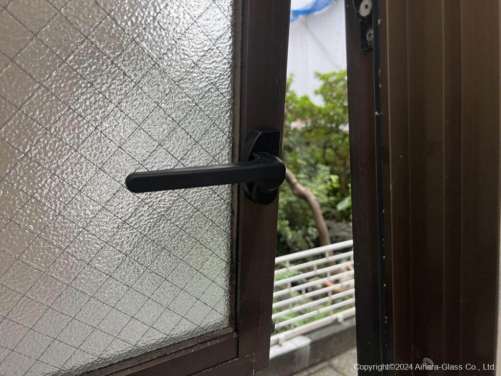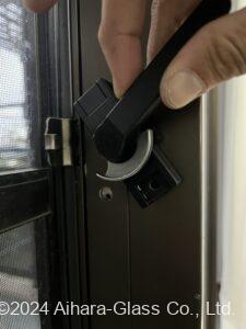 今回も似たようなタイプの物を用意したのですが規格が合わず、たまたま持ち合わせていた別メーカーのハンドルが窓と枠の距離が合いましたので、取り付け位置を変える事で交換を行う事が出来ました。
