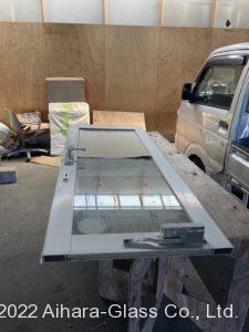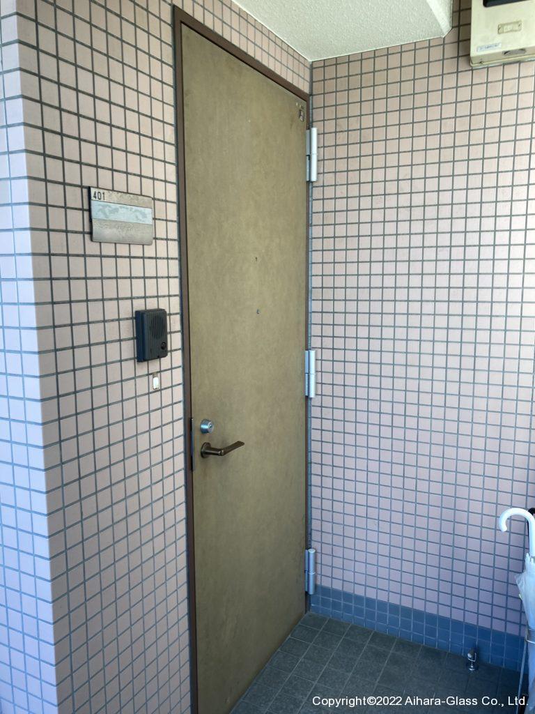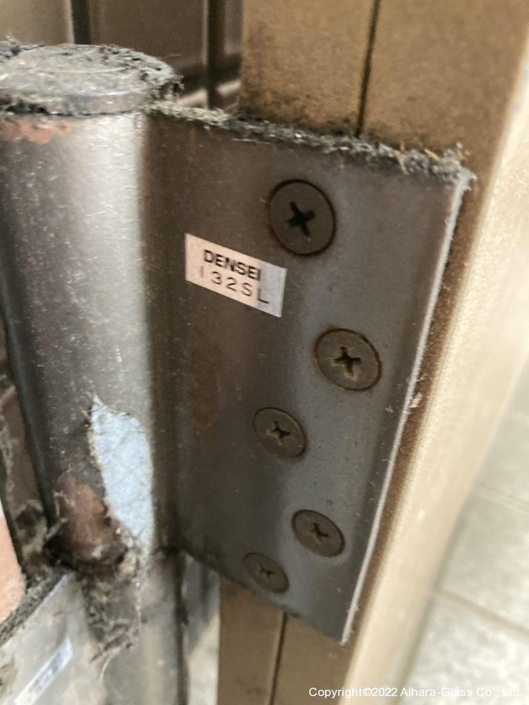 こちらが交換前の状況ですが、油圧が効かなくなりドアがここまでの位置しか締まらなくなっています。勿論手でグッと引いて閉じる事は可能ですが、その様な状態でお使い頂いていると他の部分も傷んで来て…という事になり兼ねませんのでお早めの交換をお勧め致します。