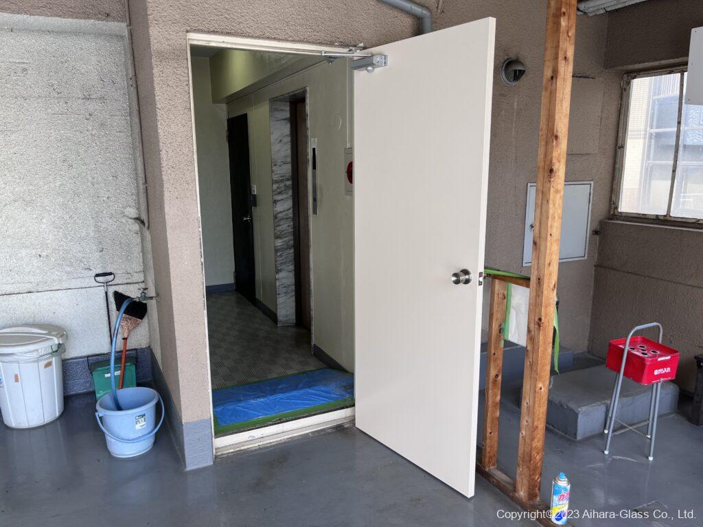 先日恵比寿にあるビルの屋上に出る扉を交換板いました。