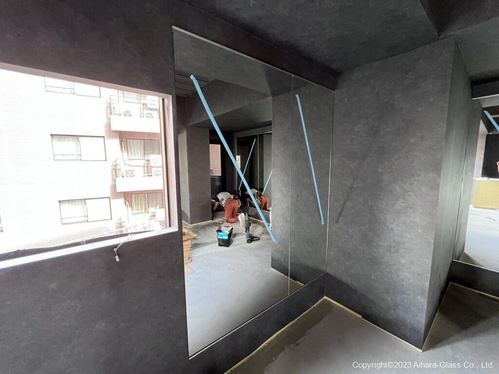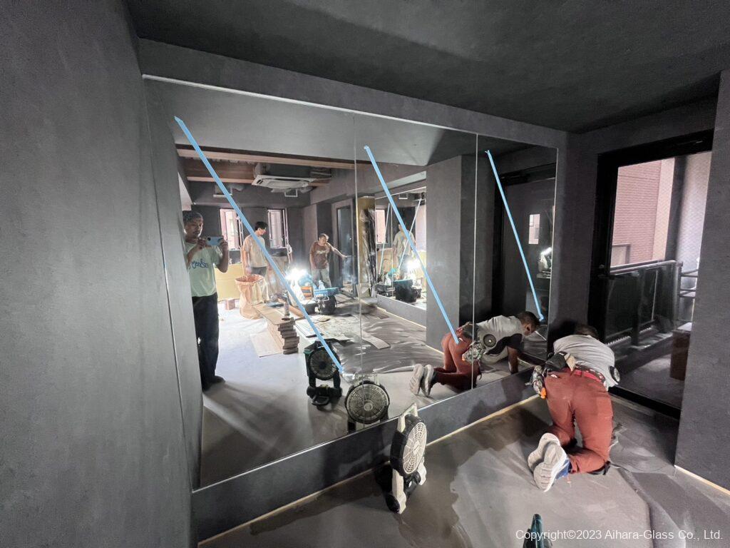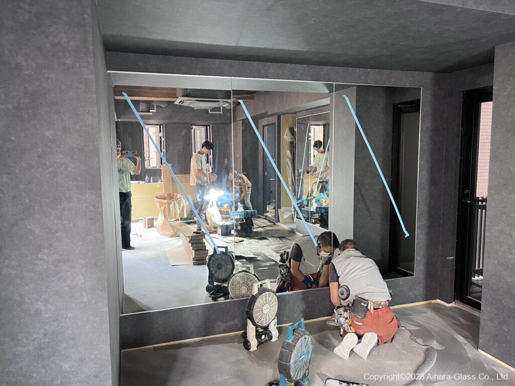 フィットネスジムの壁面に鏡を設置しました。