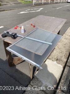 今回はガラス交換(コーキング納まり)+ヒンジ交換でしたので、主な作業時間は4時間程度でした。