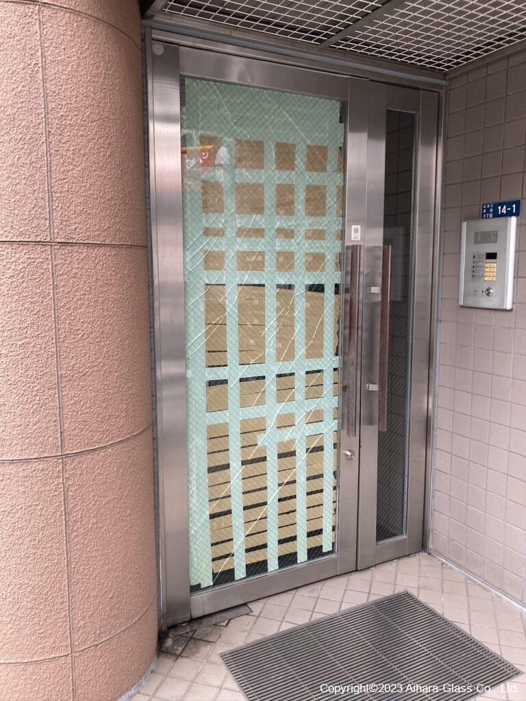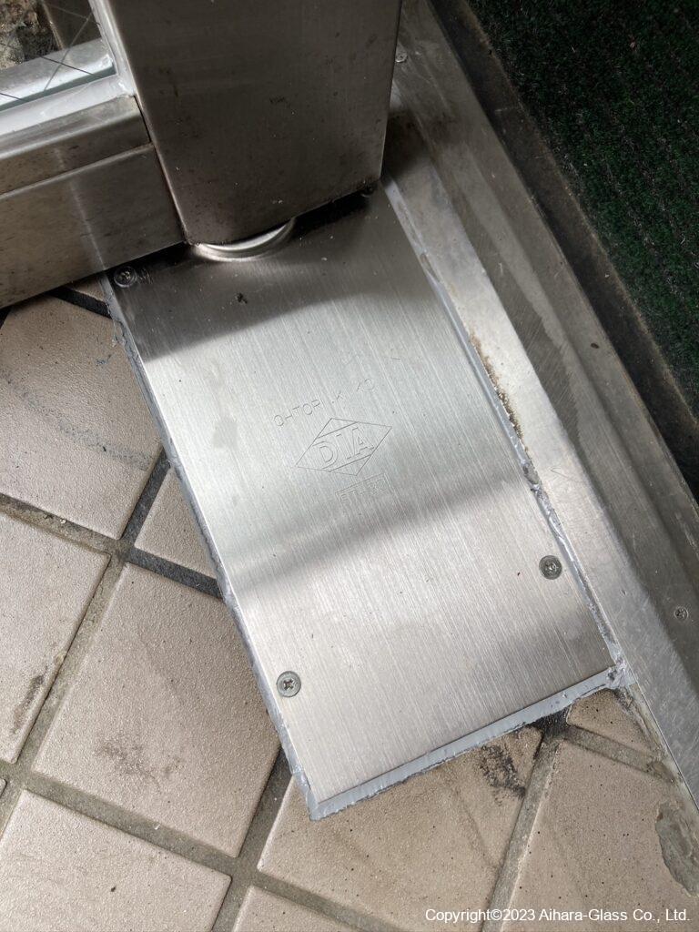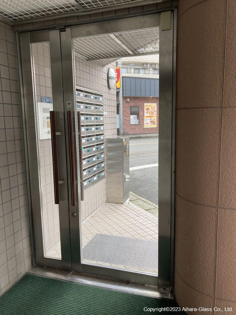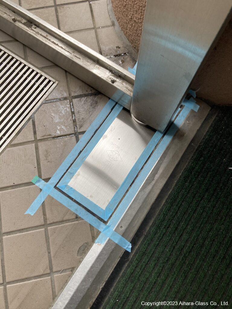 マンションのエントランスのガラスとフロアヒンジを交換しました。