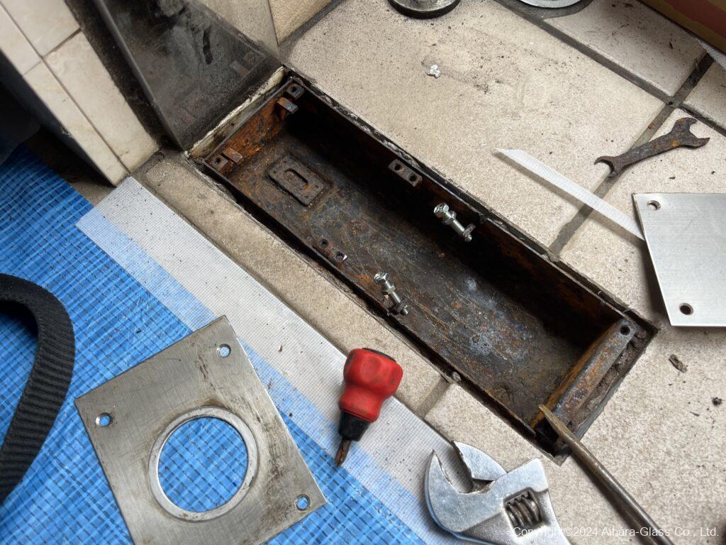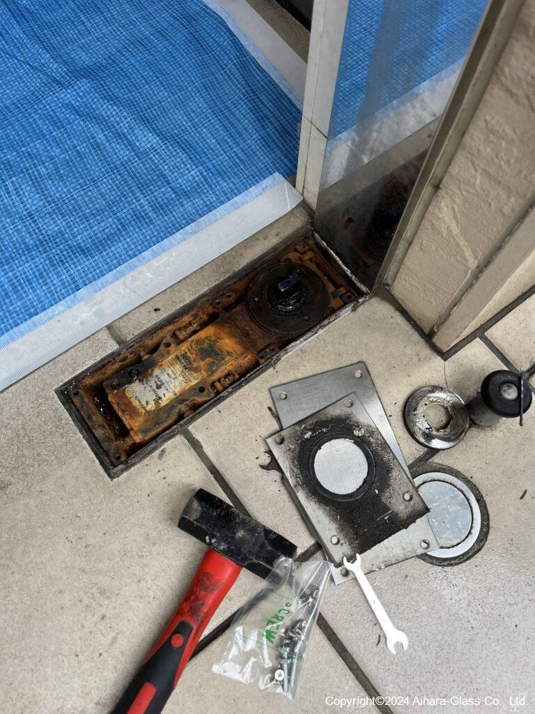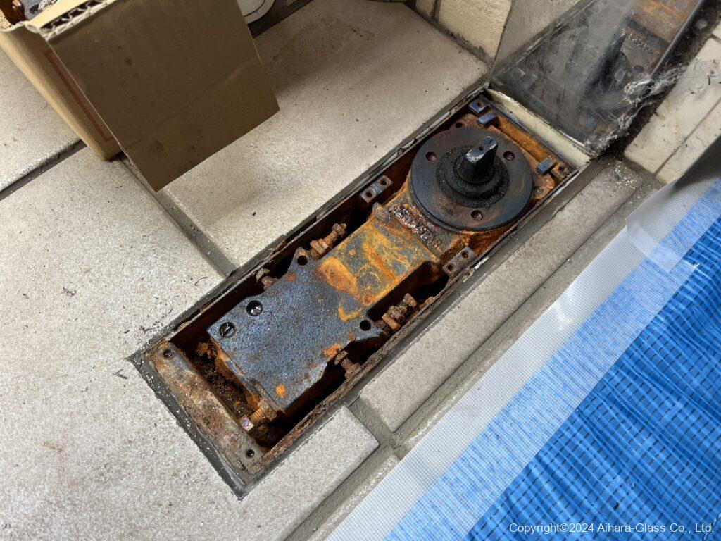 フロアヒンジの交換は、主に油圧が効かなくなって扉がドンっと閉まってしまう様な時に交換が必要になります。
