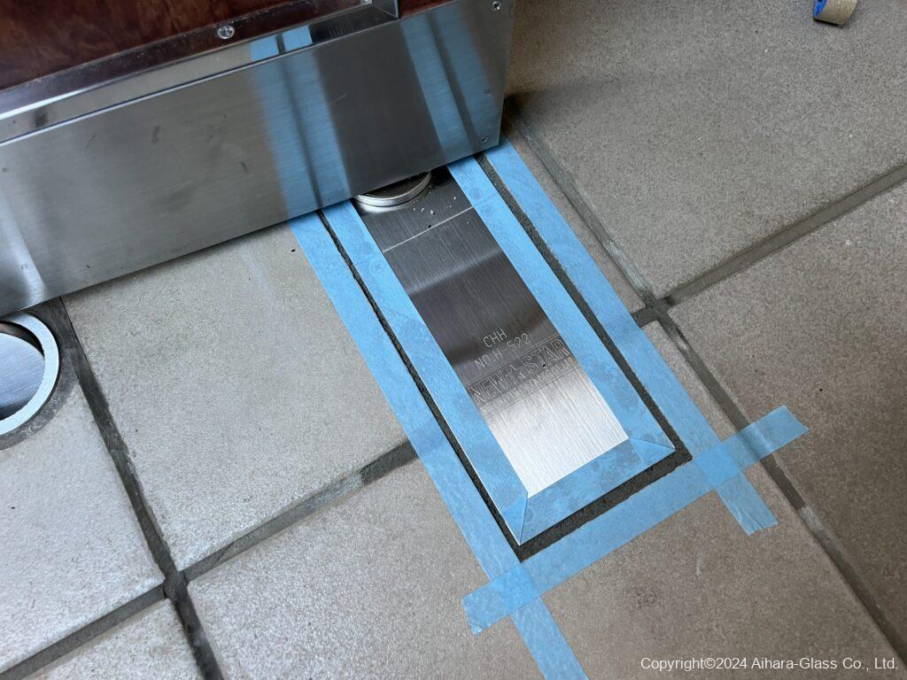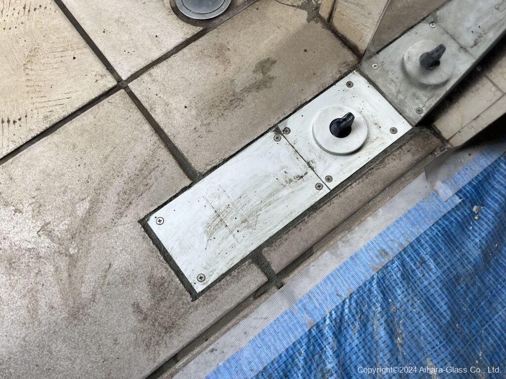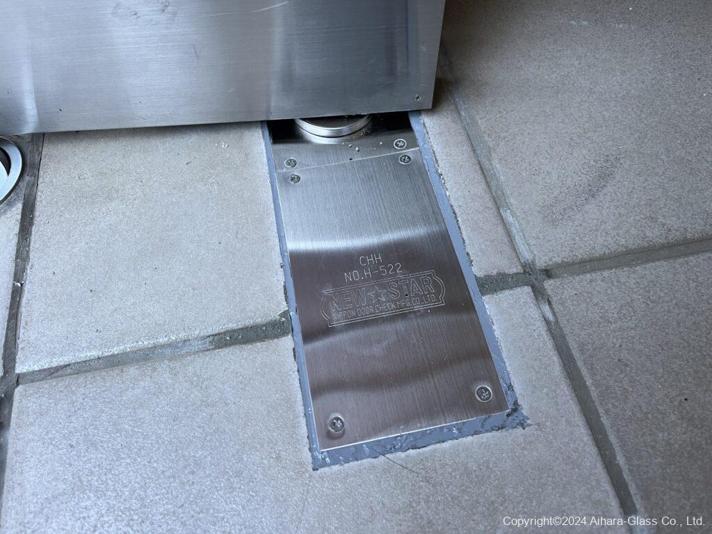 調べた所扉を油圧で閉めるフロアヒンジが、一台完全に油が漏れて油圧が効かなくなっている事が分かりました。