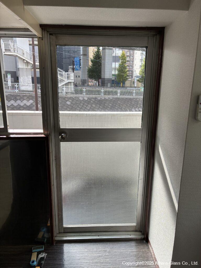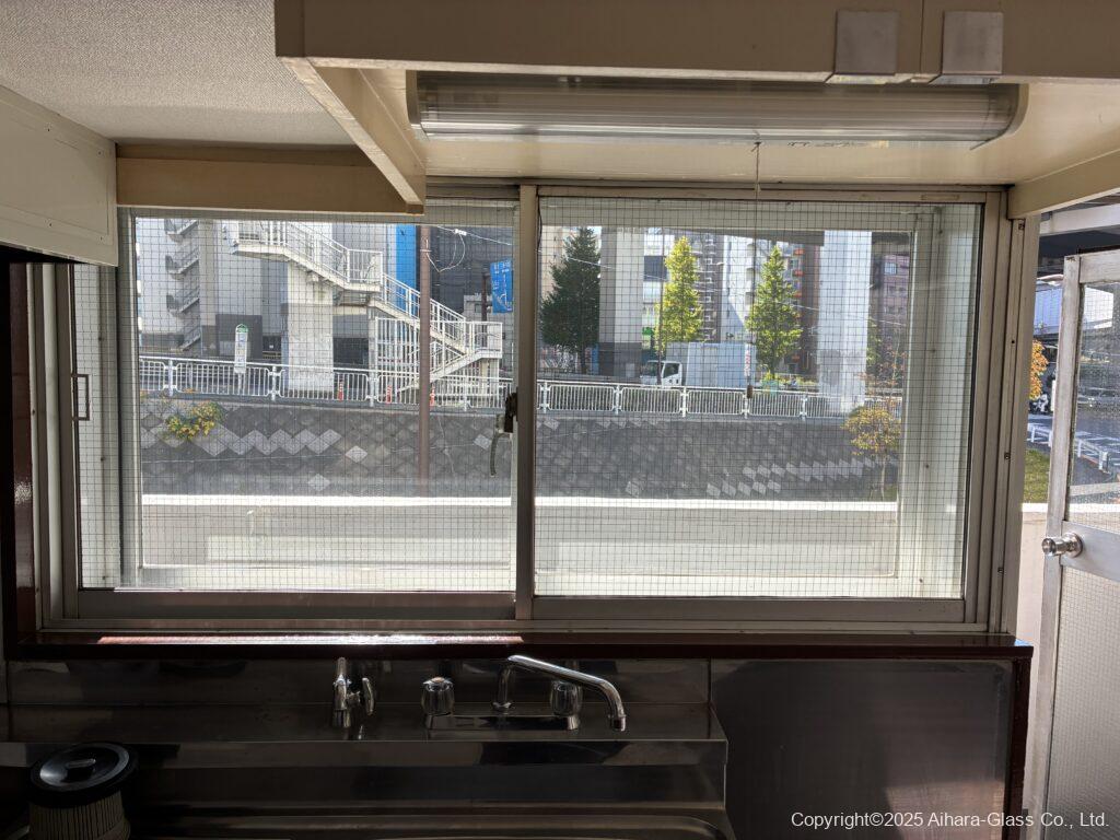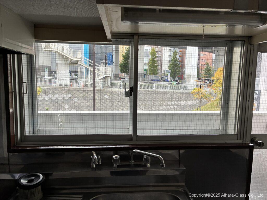 テラスドアとキッチンの引き違い窓のガラス交換を行ってほしい というご依頼をいただきました。