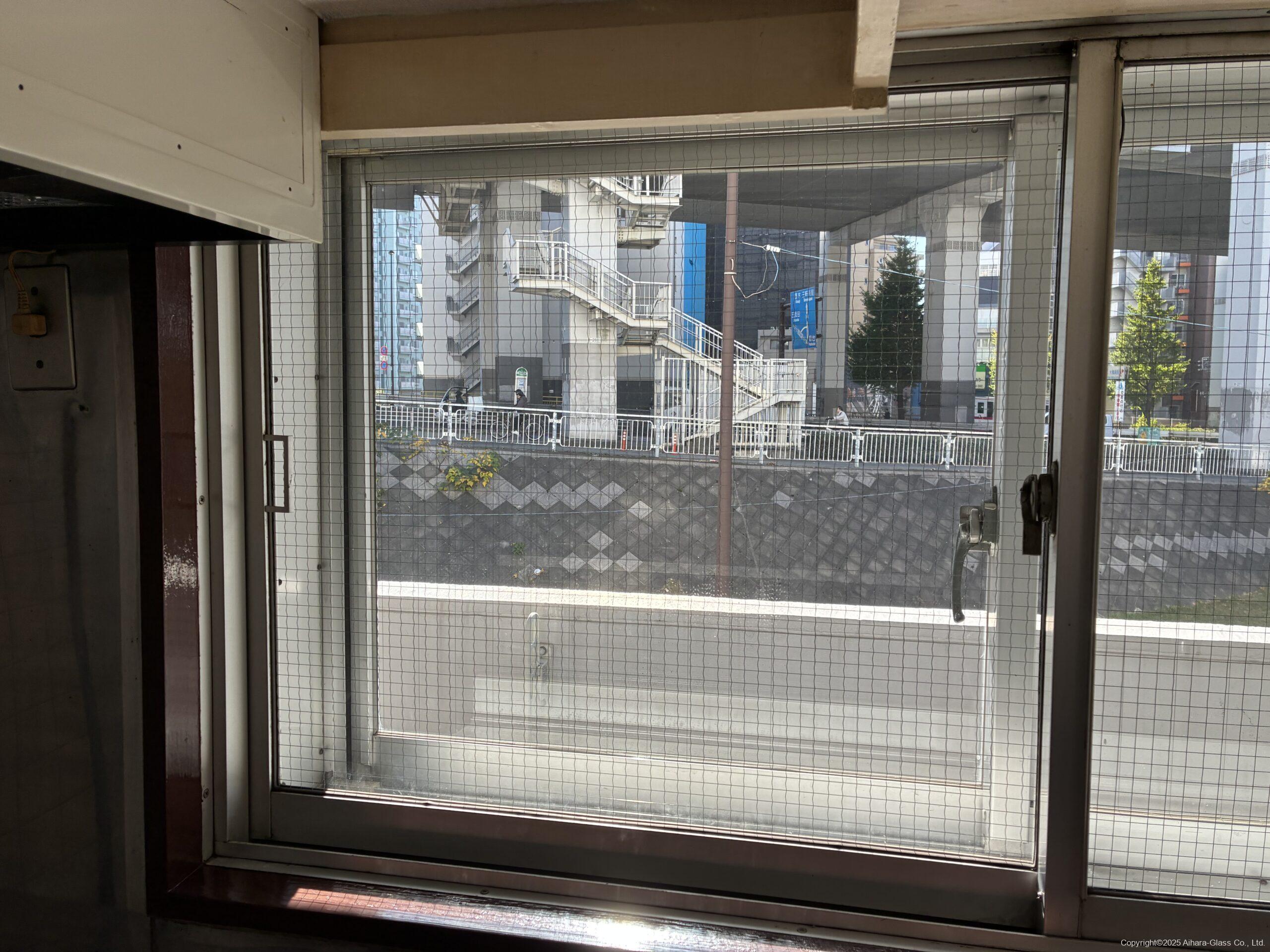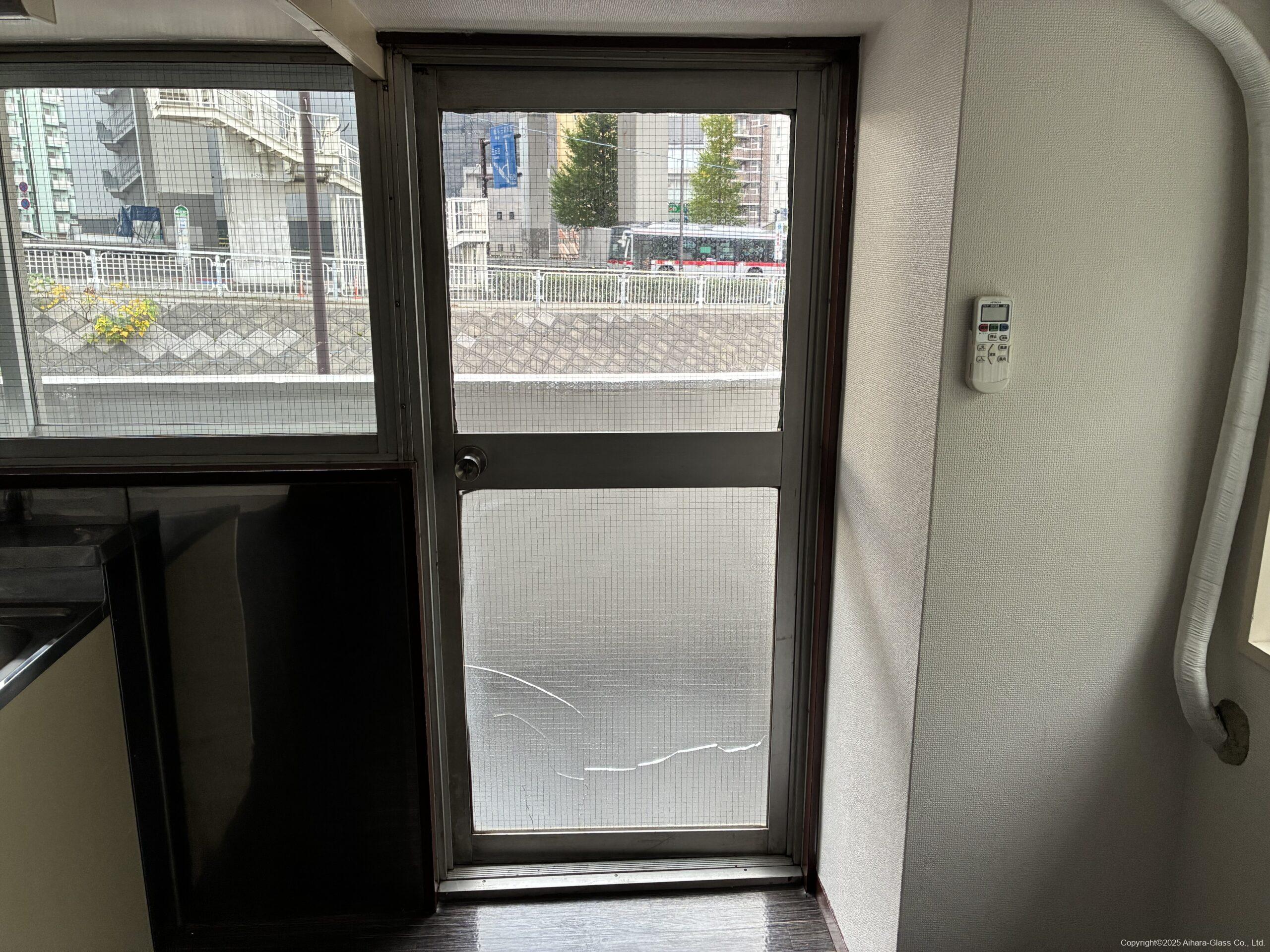 テラスドアとキッチンの引き違い窓のガラス交換を行ってほしい というご依頼をいただきました。