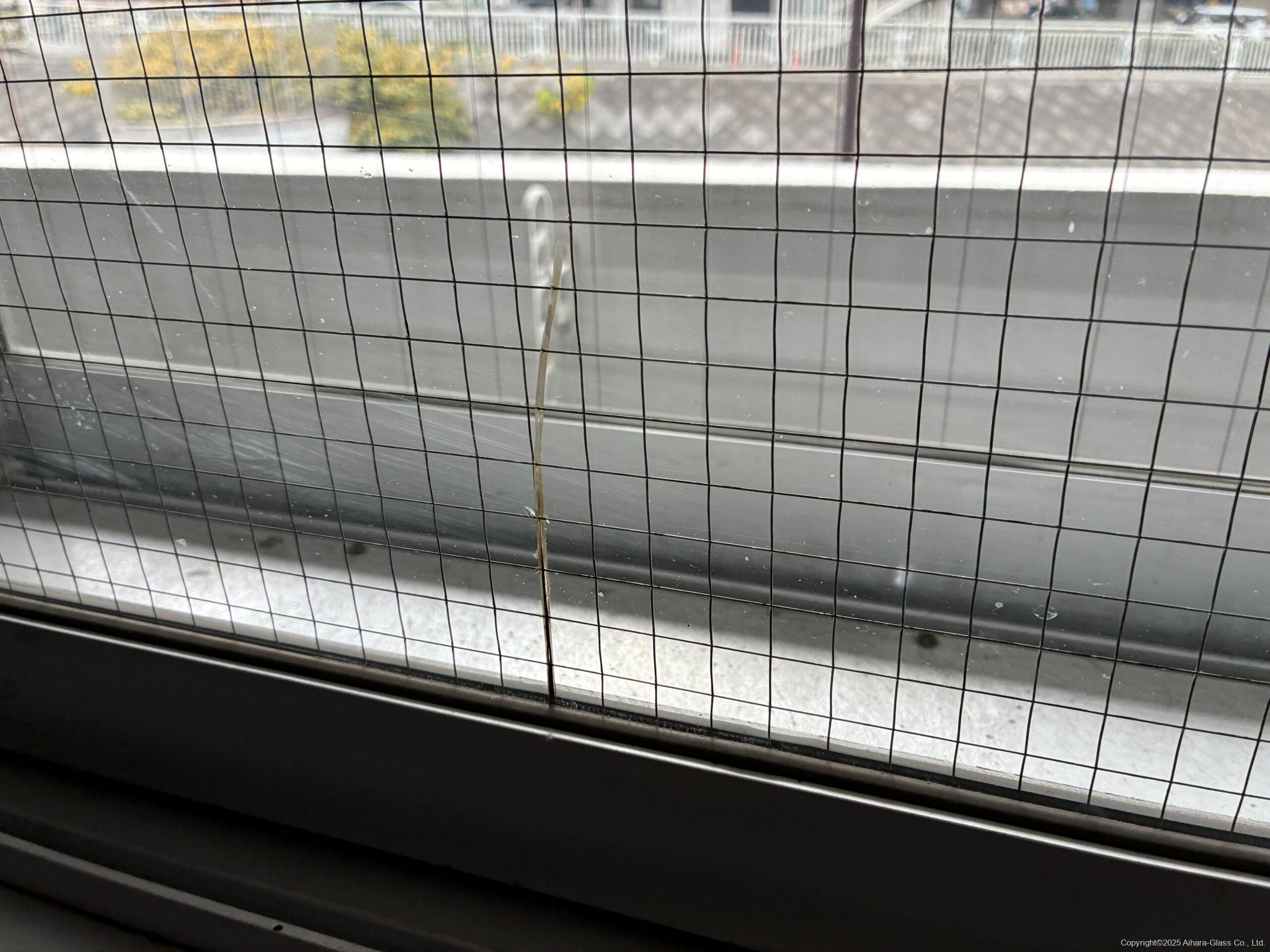 どちらもガラス内部の鉄製のワイヤーが熱膨張をして膨らんでガラスが割れたり、ワイヤーが錆で膨らんで割りたりと言った原因になります。