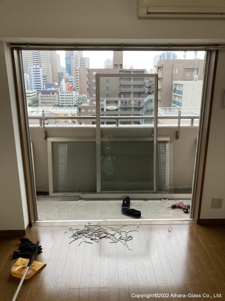 サッシ枠にガラスをコーキングと言う物で固定してありましたので、それを除去しガラスを入れ替えて再度コーキングを打ち直すという流れでした。