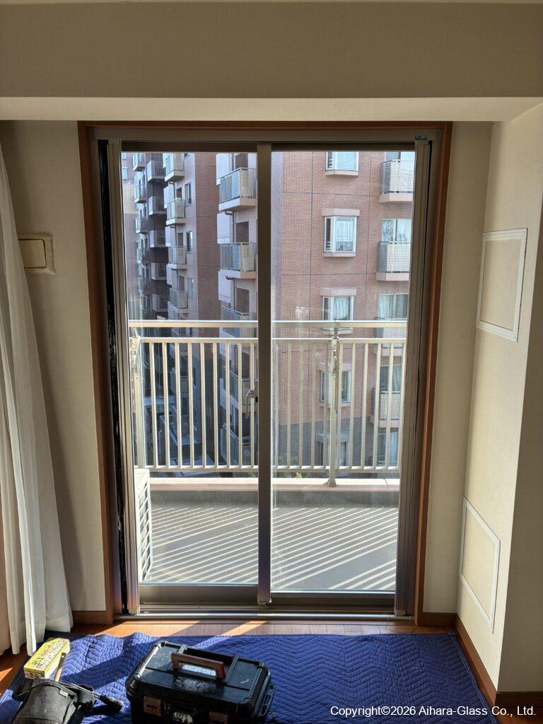 幸区の分譲マンションにて、引き違い網戸の設置工事を行いました。