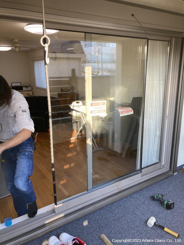 今回のガラスは横幅の広いタイプの掃き出しでした。