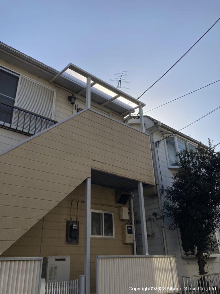 設置したのはこの二階部分の屋根なのですが、元々は木製の屋根が付いておりそれが腐食して危ないのでアルミ製の物に変えたいとの事でご依頼を受けました。