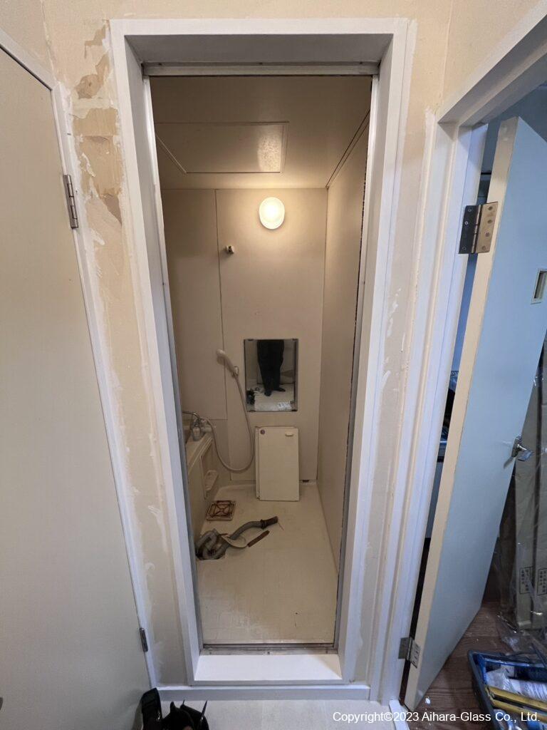 今回も築30年位のマンションのリフォームに伴い壊れかけていた浴室扉をカバー工法で新しくして欲しいと依頼を頂いての工事でした。