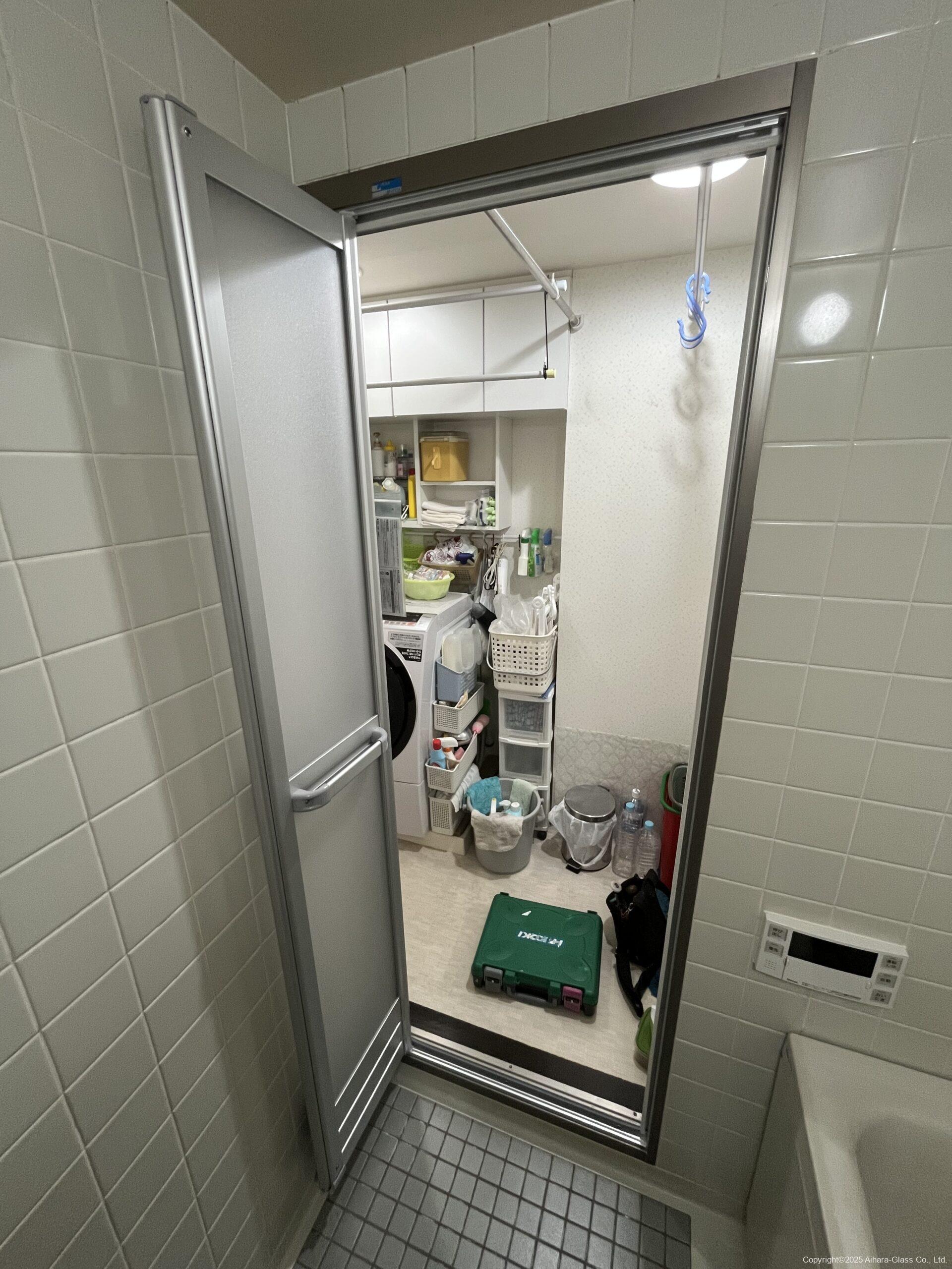 シルバー色のフレームが浴室内のタイルにもよく馴染み、清潔感ある仕上がりとなりました。