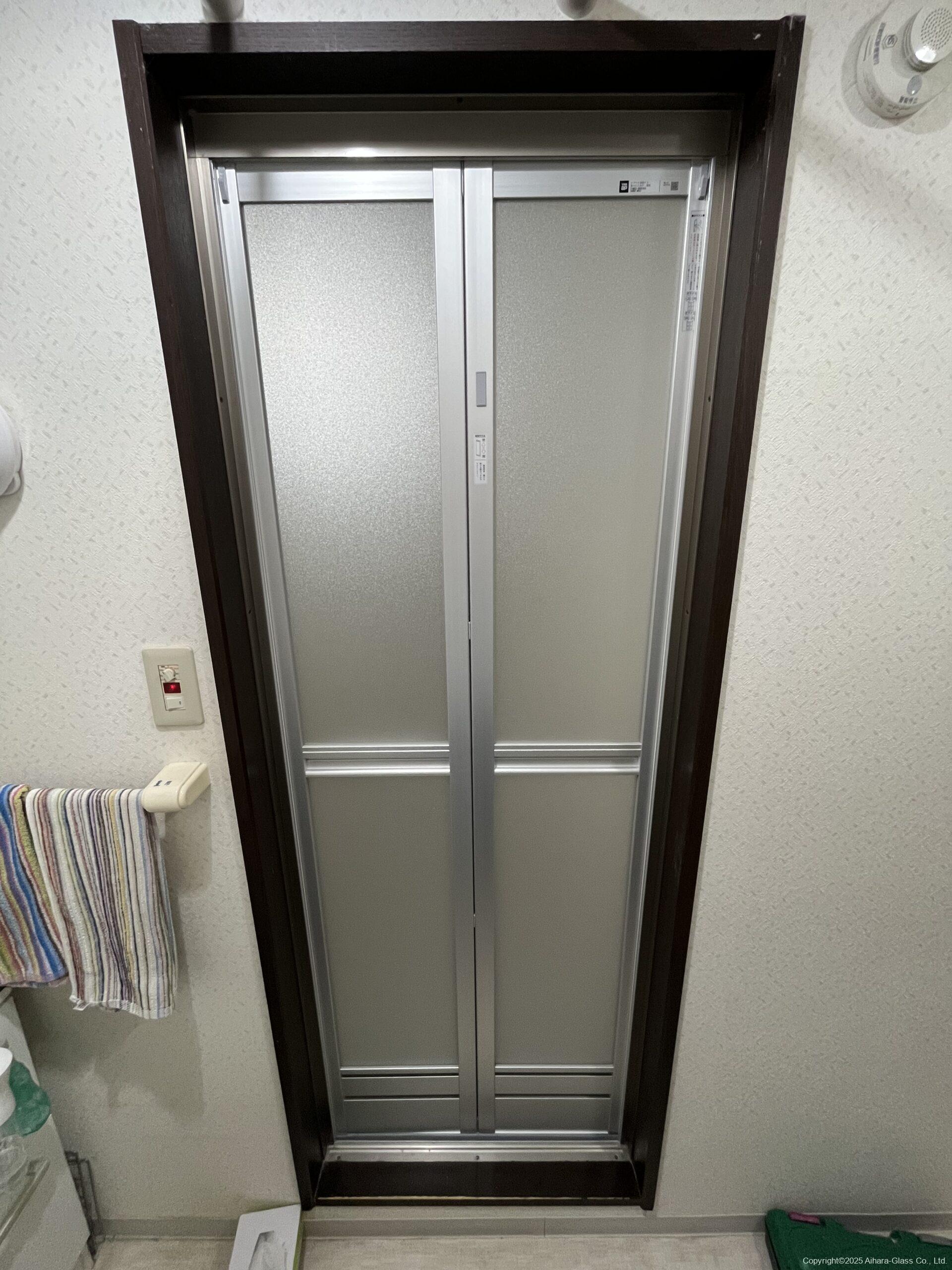 そこで今回は、YKK APの「ドアリモ 中折れ戸」を使用し、カバー工法にて新規中折れ戸を取り付けいたしました。