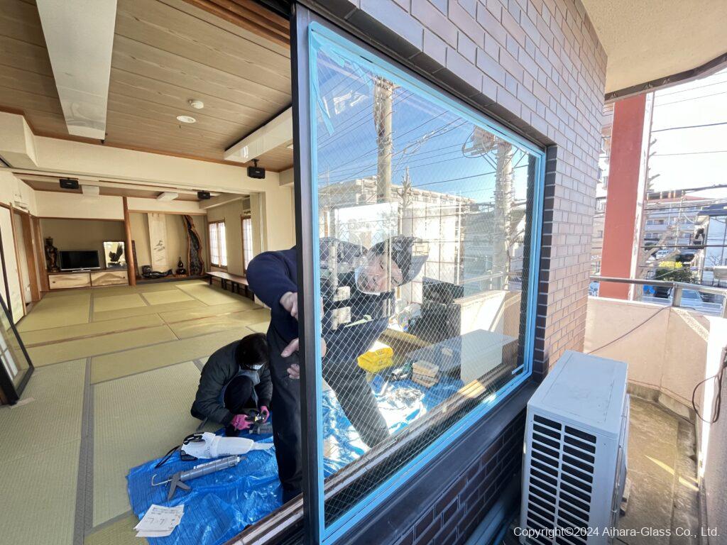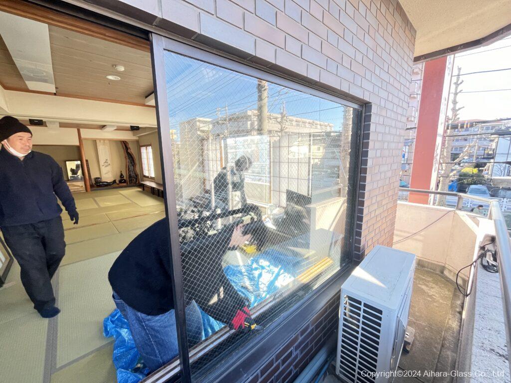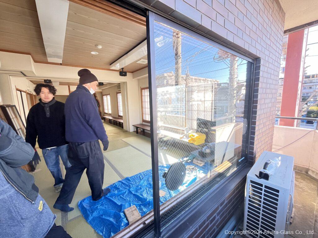 温泉旅館の客室のガラス交換を行いました。