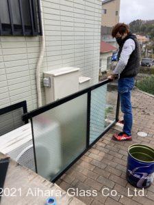 今回は玄関ドアの握手が外観左側に付いてましたので、屋根は外観左よりに取り付けました。センターの方が見た目は良いのですが、扉が開いた状態で考えると出る際に左寄りに屋根があった方が雨を凌げるからです。