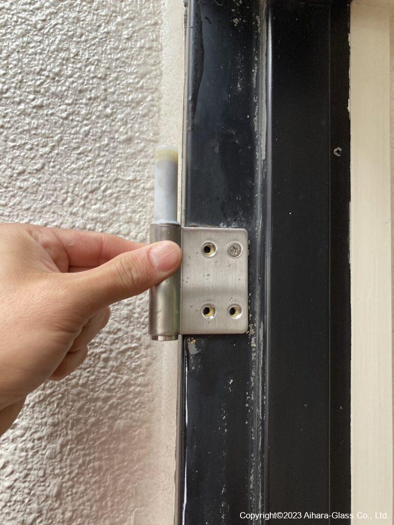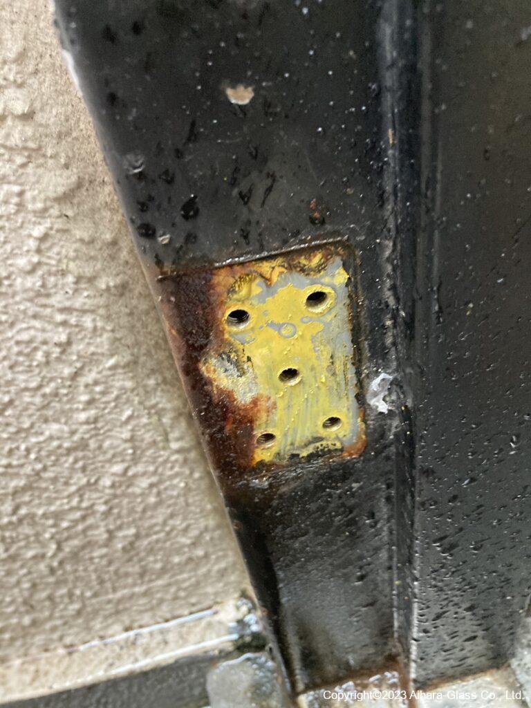 この部屋は最上階の三階にあるのですが、丁度玄関ドアの上部に屋根が無いので雨が当たり易くなっており、そのせいで他の部屋よりもドアの腐食スピードが速かった物と思われます。