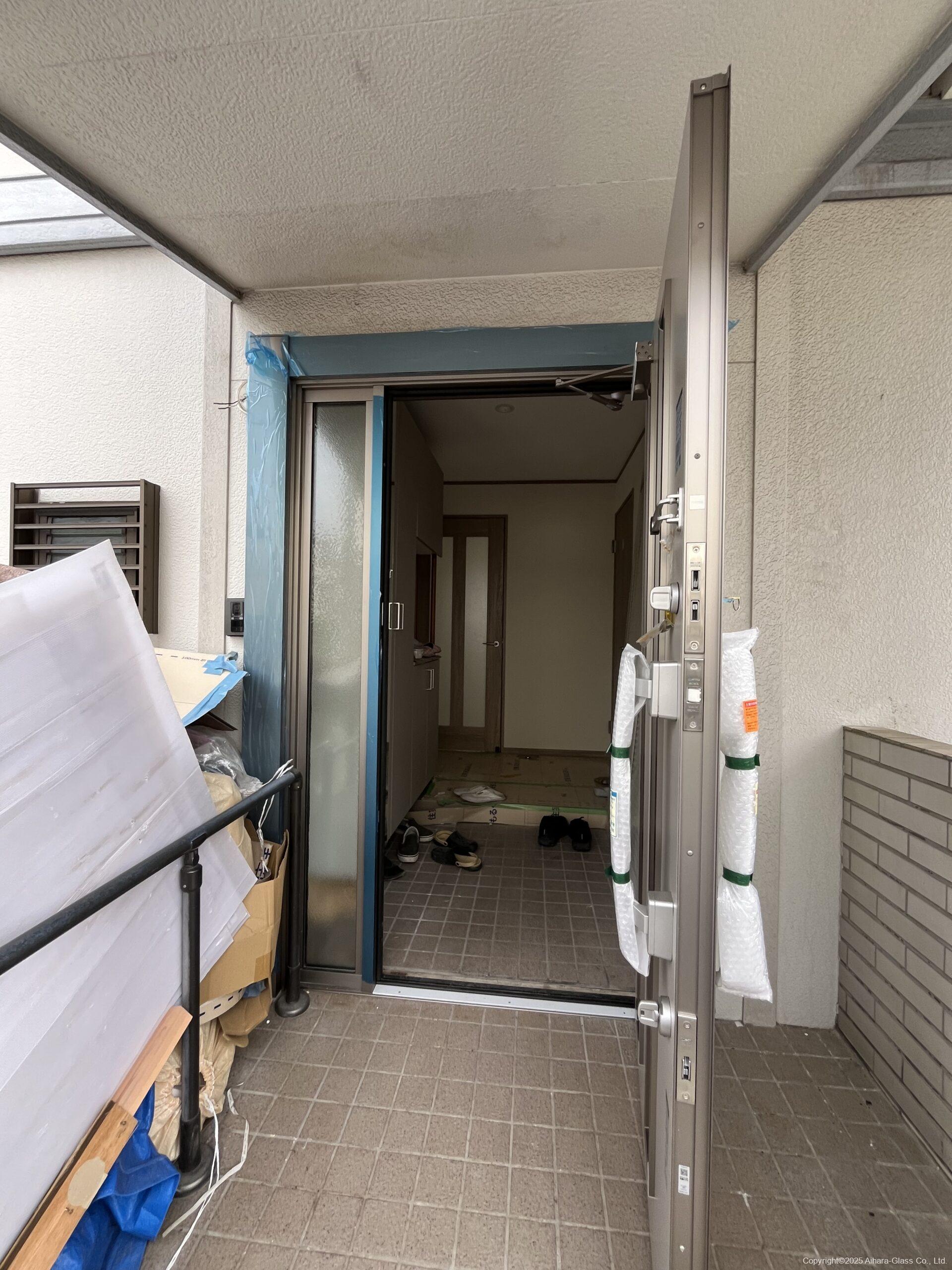 大きな工事をしてそれをブログに書くと、同じ工事の依頼が連鎖して入ると言う有難い事にそれが弊社のよくある展開になっている訳ですが…今回も玄関ドアのカバー工法の依頼を頂き施工させて頂きました。