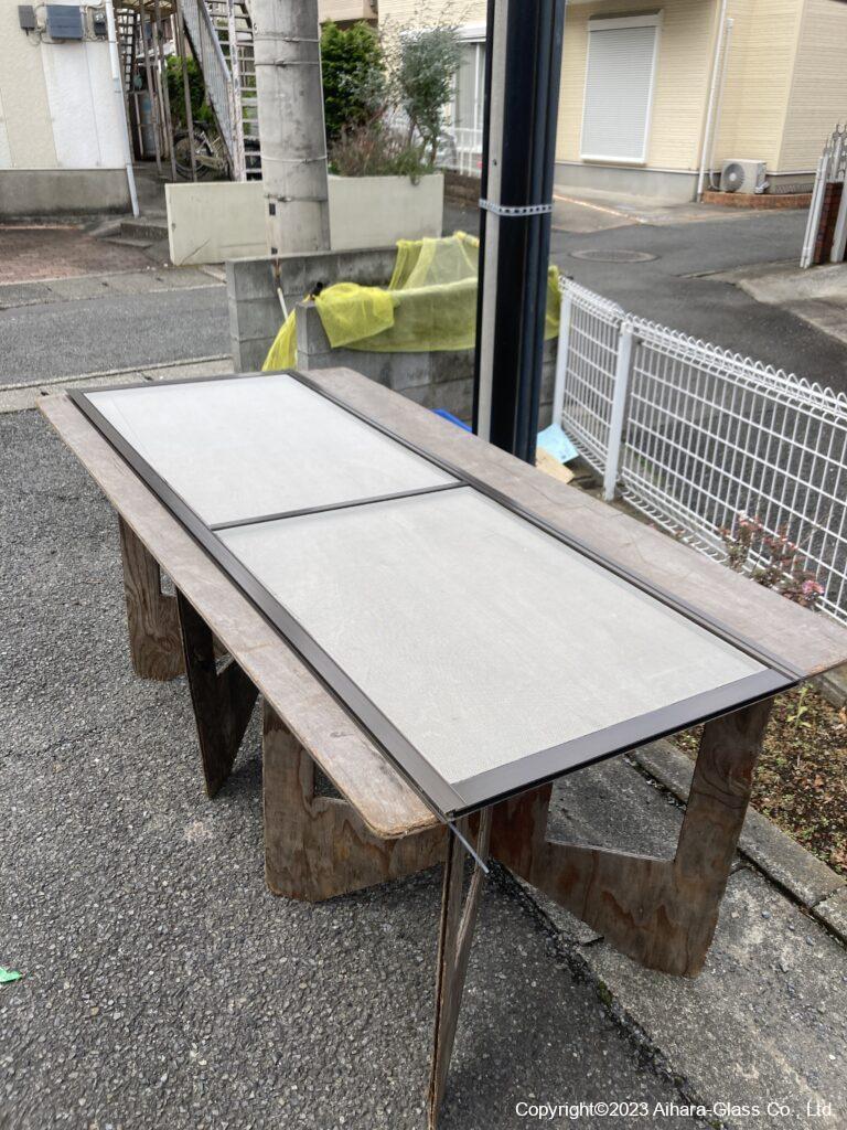 網戸の張替え作業は畳一畳分ほどのスペースで組み立て式の台を広げて作業します。
