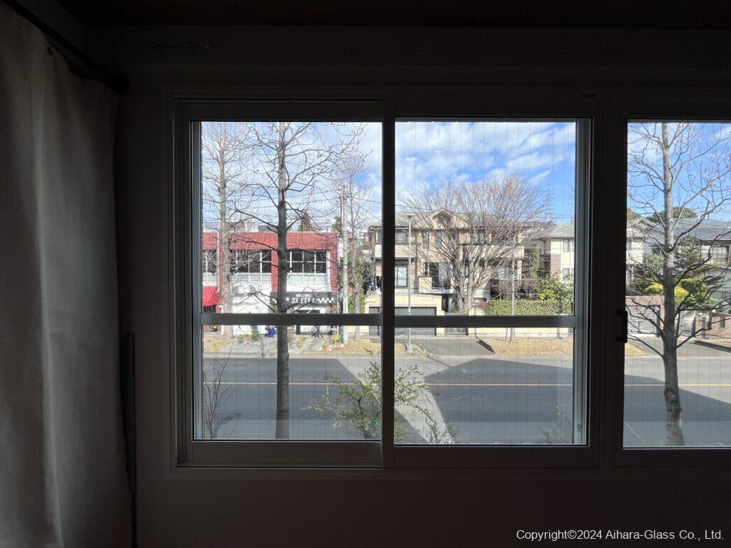 写真で見て頂くと分かるのですが、前に比較的大きな道路が通っており、駅に近く車の通りも有り、更に路線バスが物凄い頻度で通る為に道路ノイズや低い音の排気音を拾ってしまうので、遮音性能の高いガラスで内窓を設置したいというご相談を受けました。