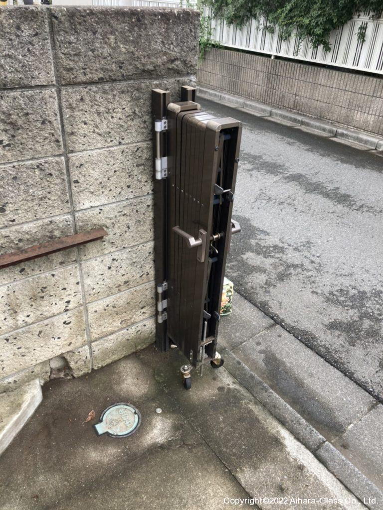 下の写真が既存の物ですが、門扉のフレーム自体が歪んだりしているせいか閉じても閉じ切らなかったり、フレームが居れている部分がありましたので、今回新設工事のご依頼を頂きました。