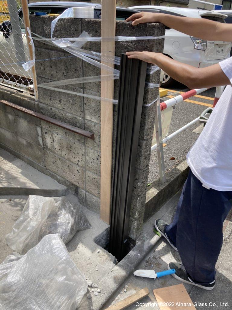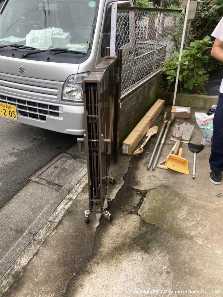 その後は門扉に部品を取り付けた後、支柱に連結させて敷地の高低に合わせて車の高さを調整し作業完了となります。